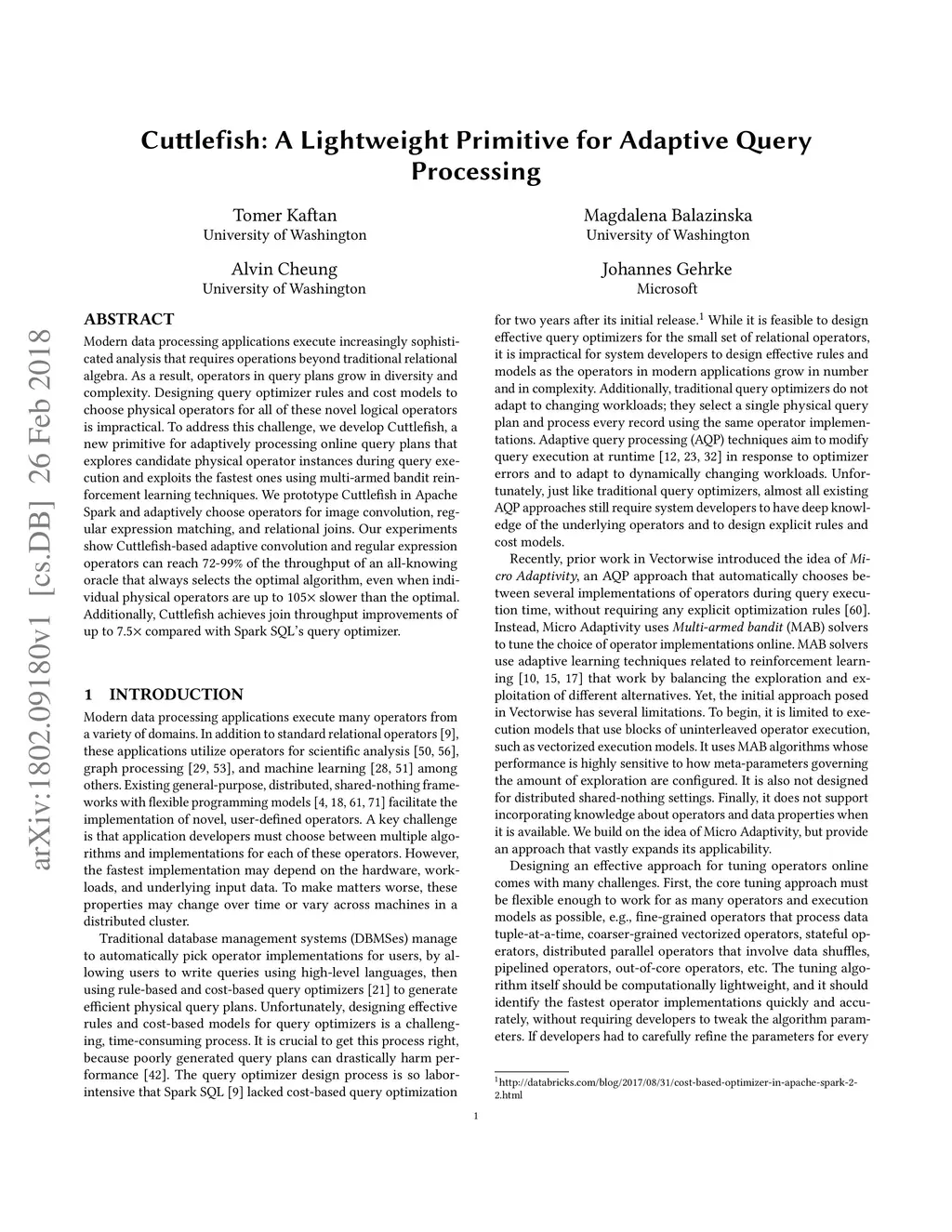 Cuttlefish: A Lightweight Primitive for Adaptive Query Processing