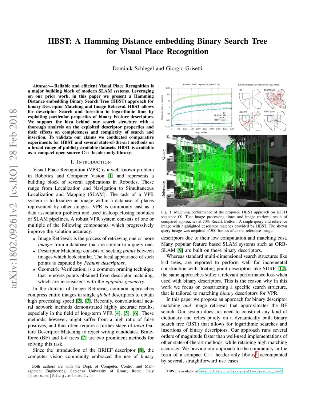 HBST: A Hamming Distance embedding Binary Search Tree for Visual Place