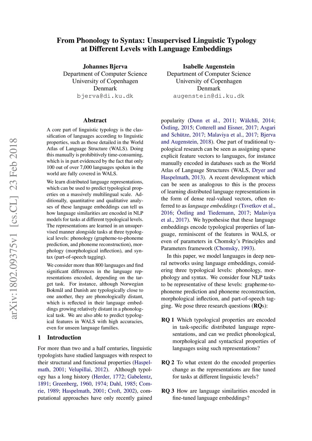 From Phonology to Syntax: Unsupervised Linguistic Typology at Different