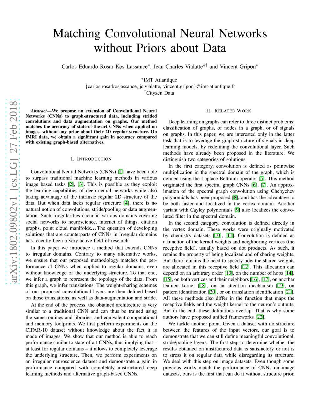 We propose an extension of Convolutional Neural Networks (CNNs) to graph-structured data, including strided convolutions and data augmentation on graphs. Our method matches the accuracy of state-of-the-art CNNs when applied on images, without any prior about their 2D regular structure. On fMRI data, we obtain a significant gain in accuracy compared with existing graph-based alternatives.
