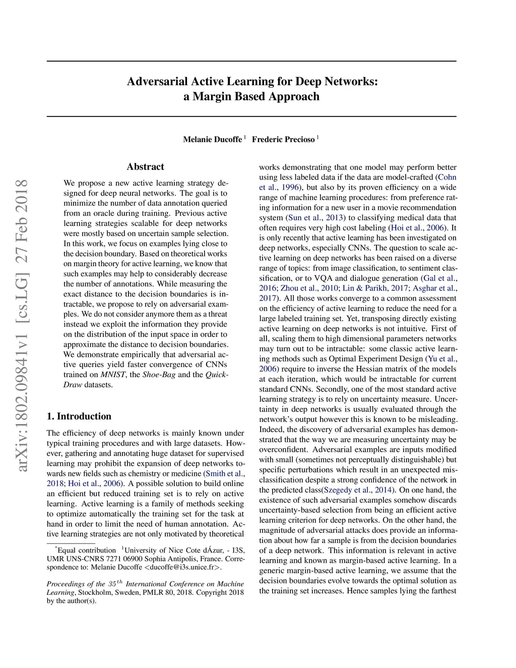 Adversarial Active Learning for Deep Networks: a Margin Based Approach