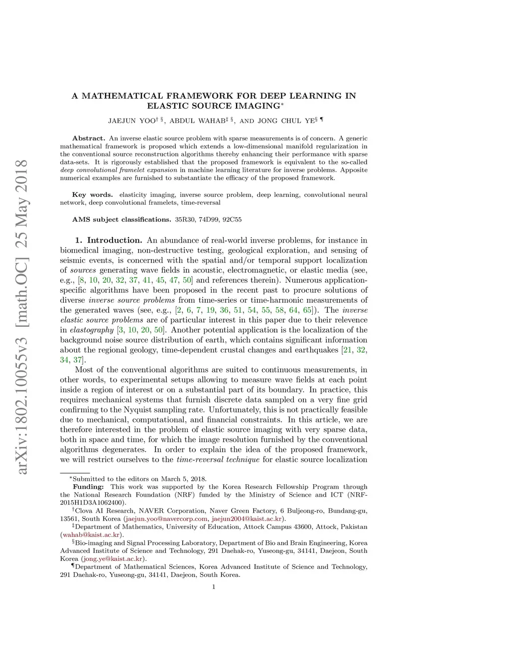 A Mathematical Framework for Deep Learning in Elastic Source Imaging