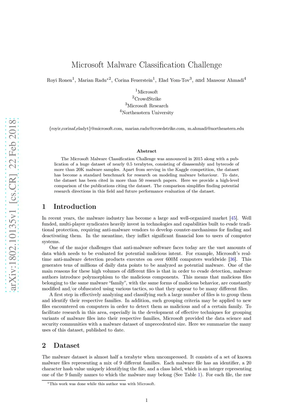 The Microsoft Malware Classification Challenge was announced in 2015 along with a publication of a huge dataset of nearly 0.5 terabytes, consisting of disassembly and bytecode of more than 20K malware samples. Apart from serving in the Kaggle competition, the dataset has become a standard benchmark for research on modeling malware behaviour. To date, the dataset has been cited in more than 50 research papers. Here we provide a high-level comparison of the publications citing the dataset. The comparison simplifies finding potential research directions in this field and future performance evaluation of the dataset.