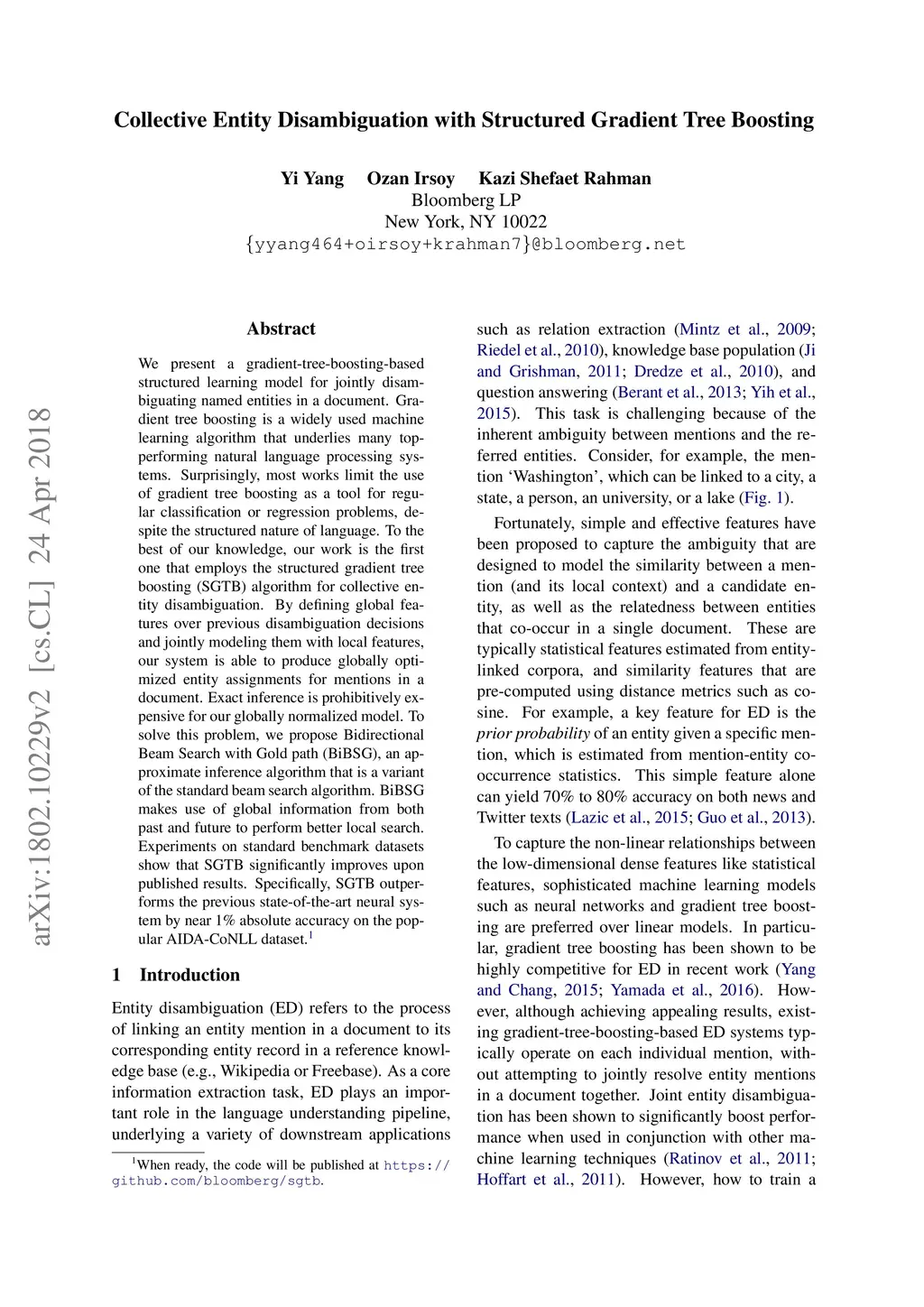 Collective Entity Disambiguation with Structured Gradient Tree Boosting