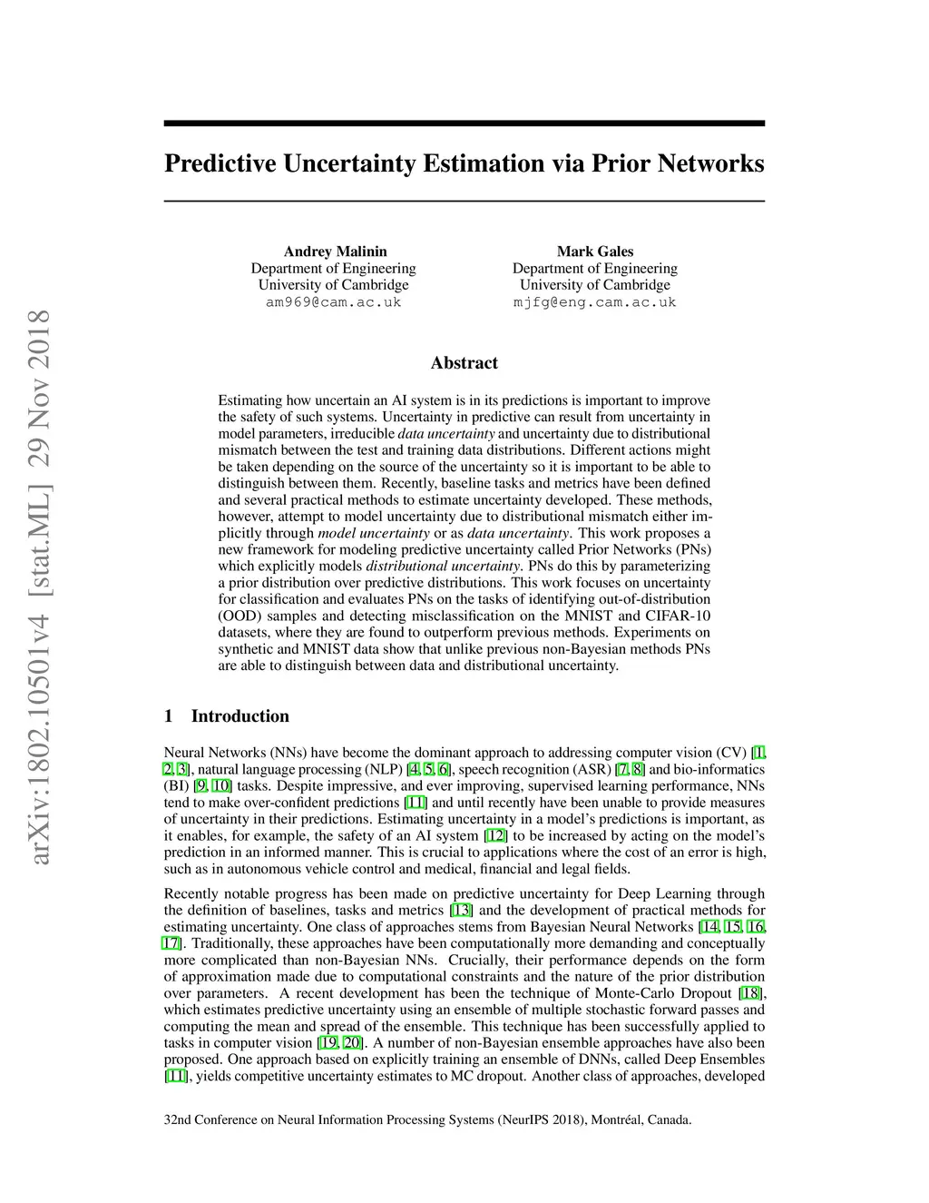 Predictive Uncertainty Estimation via Prior Networks