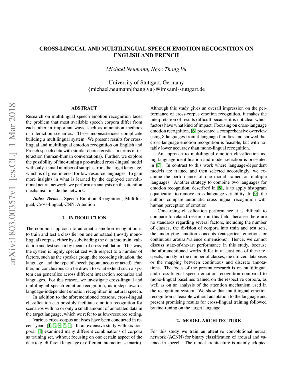 Cross-lingual and Multilingual Speech Emotion Recognition on English and