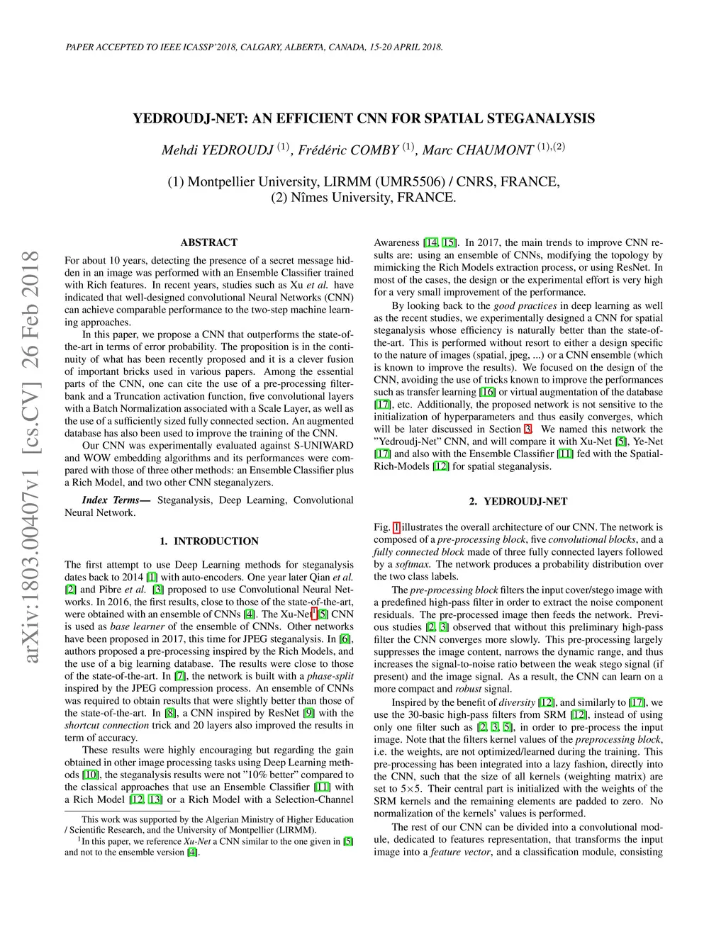 Yedrouj-Net: An efficient CNN for spatial steganalysis