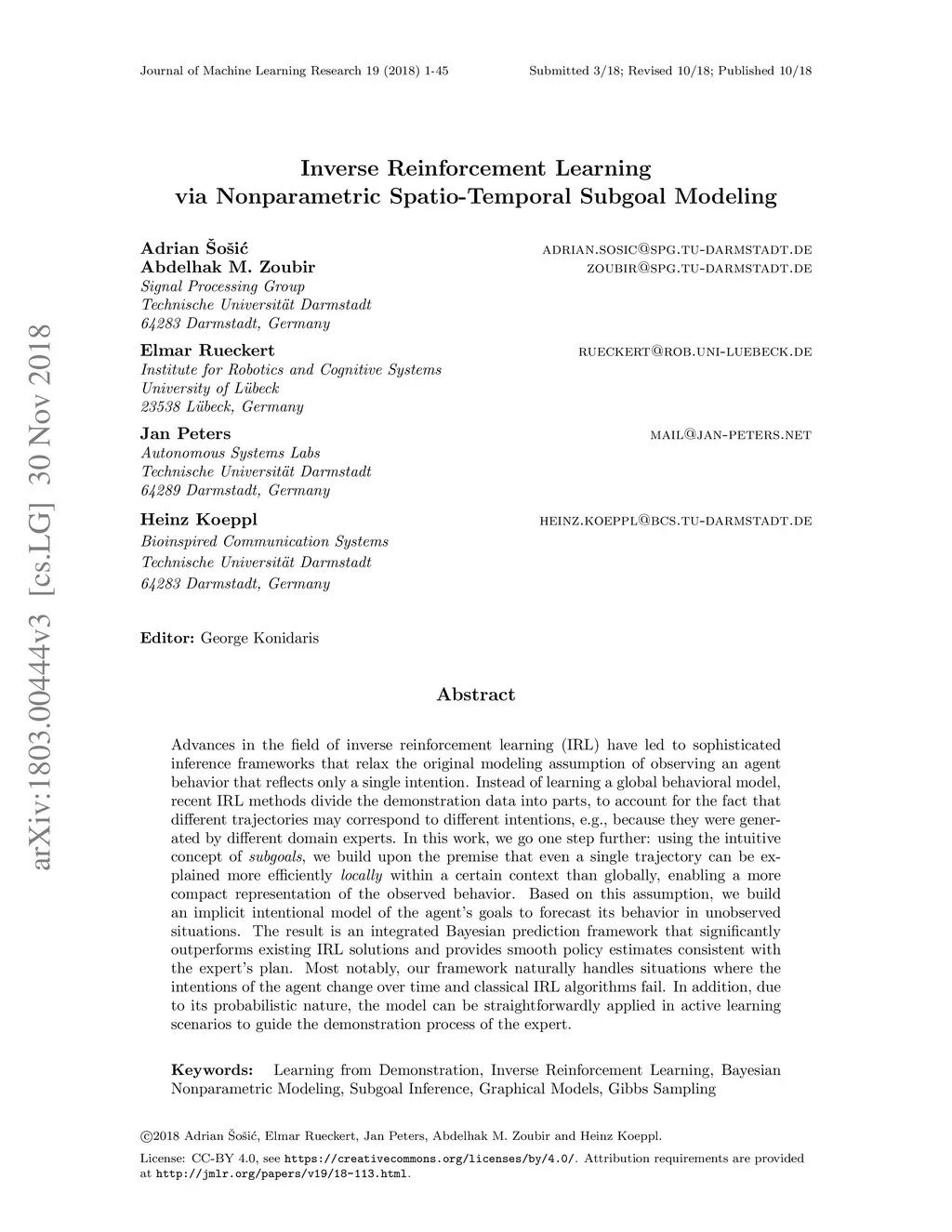 Inverse Reinforcement Learning via Nonparametric Spatio-Temporal Subgoal