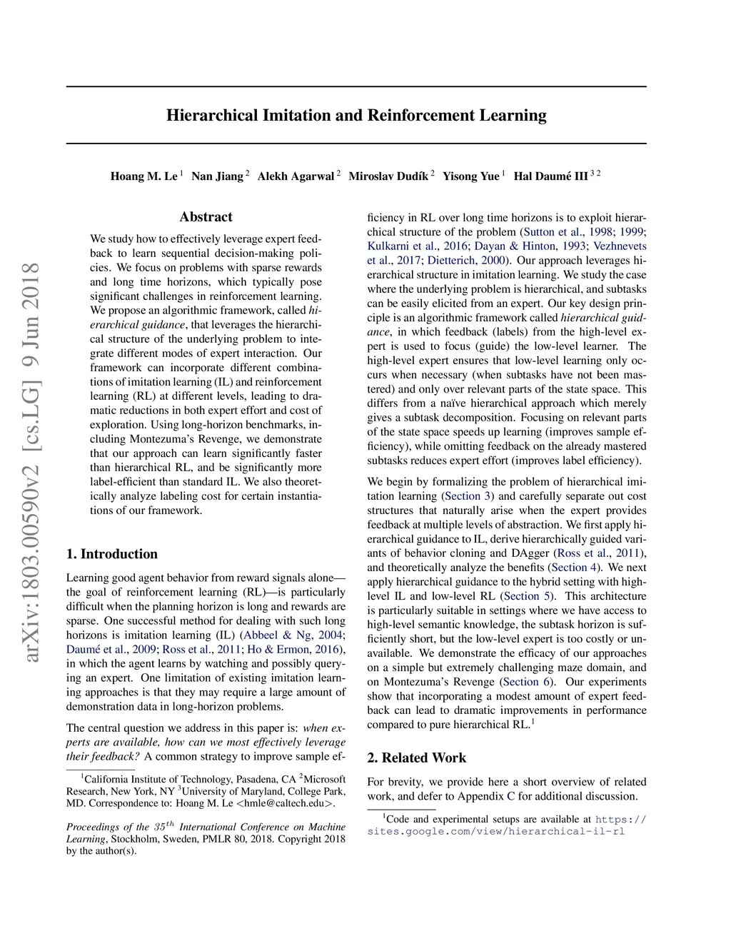 Hierarchical Imitation and Reinforcement Learning