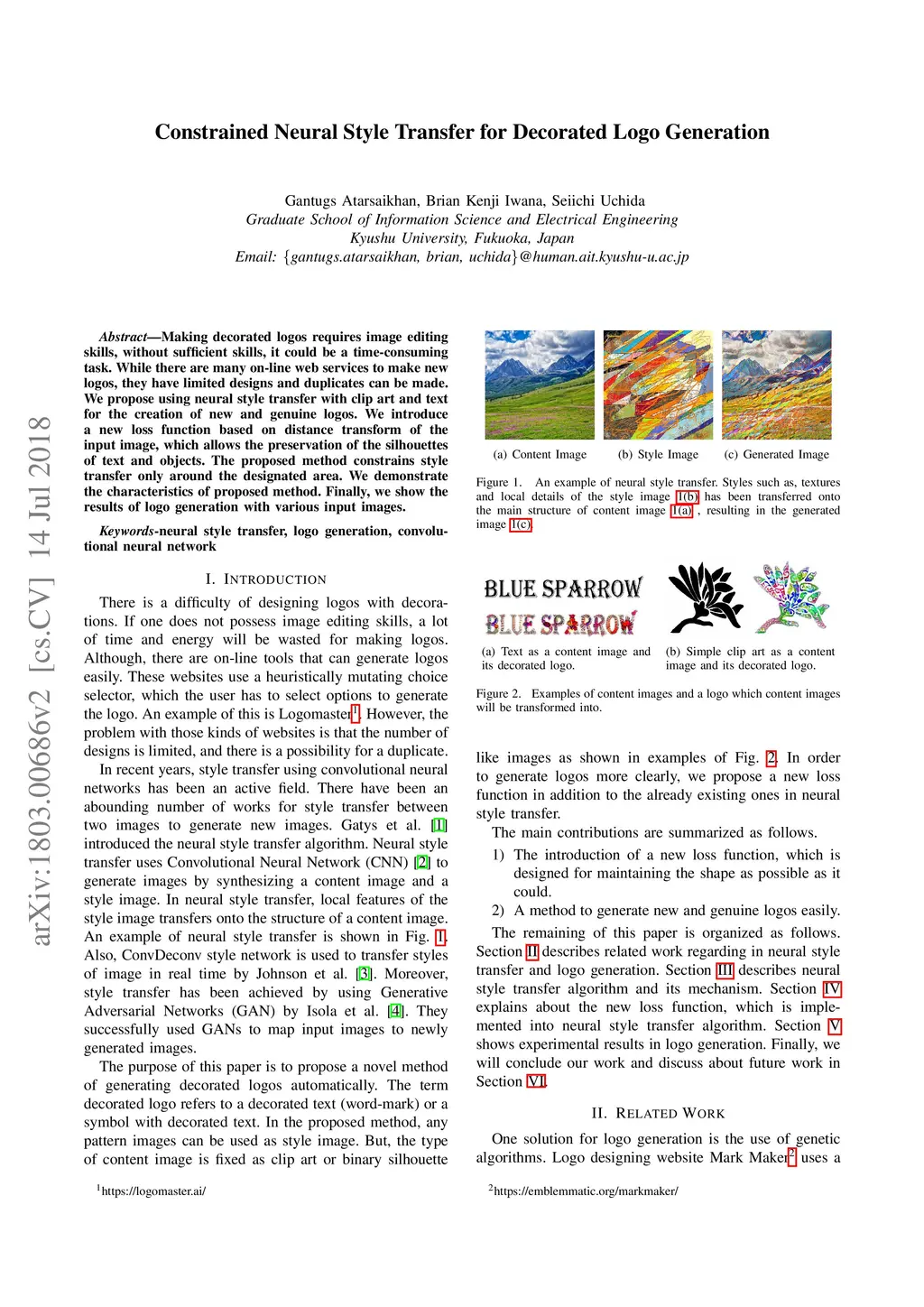 Constrained Neural Style Transfer for Decorated Logo Generation