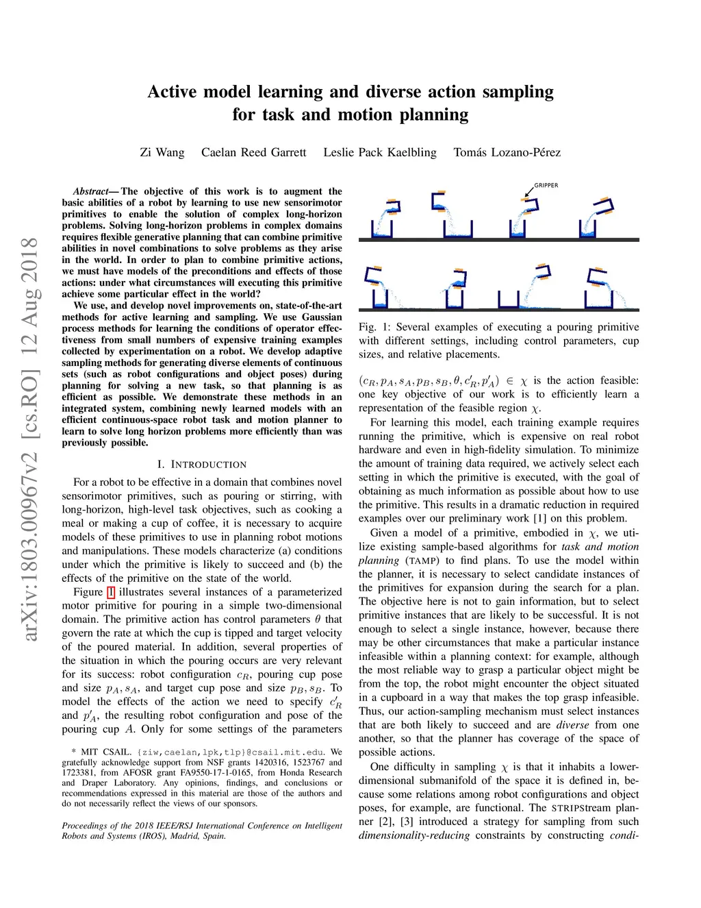 The objective of this work is to augment the basic abilities of a robot by learning to use new sensorimotor primitives to enable the solution of complex long-horizon problems. Solving long-horizon problems in complex domains requires flexible generative planning that can combine primitive abilities in novel combinations to solve problems as they arise in the world. In order to plan to combine primitive actions, we must have models of the preconditions and effects of those actions: under what circumstances will executing this primitive achieve some particular effect in the world? We use, and develop novel improvements on, state-of-the-art methods for active learning and sampling. We use Gaussian process methods for learning the conditions of operator effectiveness from small numbers of expensive training examples collected by experimentation on a robot. We develop adaptive sampling methods for generating diverse elements of continuous sets (such as robot configurations and object poses) during planning for solving a new task, so that planning is as efficient as possible. We demonstrate these methods in an integrated system, combining newly learned models with an efficient continuous-space robot task and motion planner to learn to solve long horizon problems more efficiently than was previously possible.