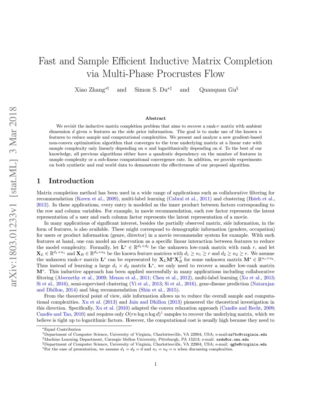 Fast and Sample Efficient Inductive Matrix Completion via Multi-Phase