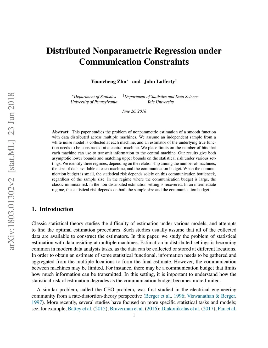 Distributed Nonparametric Regression under Communication Constraints