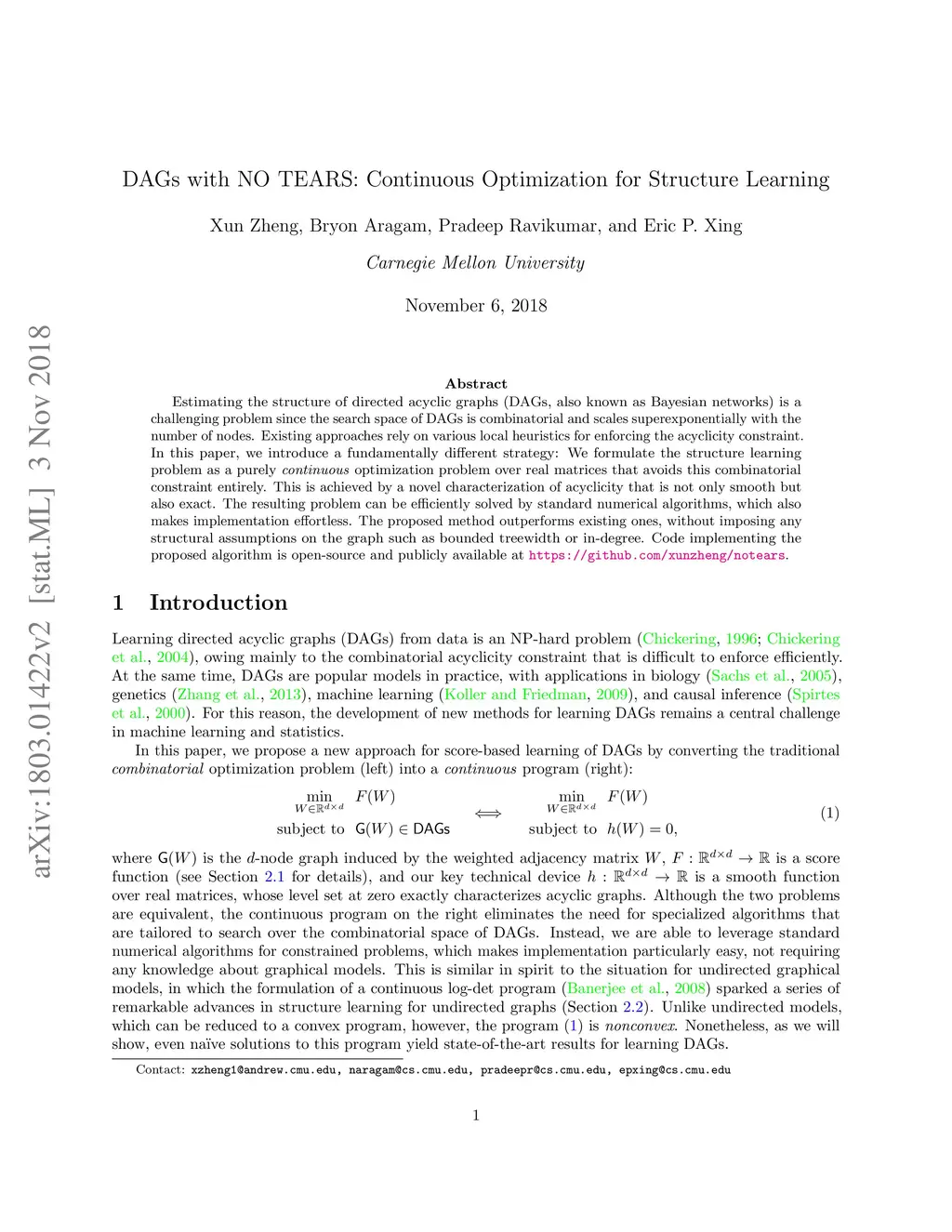 DAGs with NO TEARS: Continuous Optimization for Structure Learning