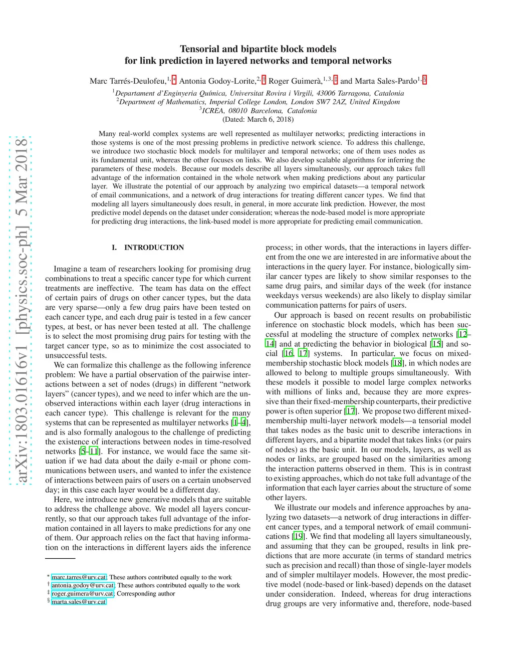 Tensorial and bipartite block models for link prediction in layered