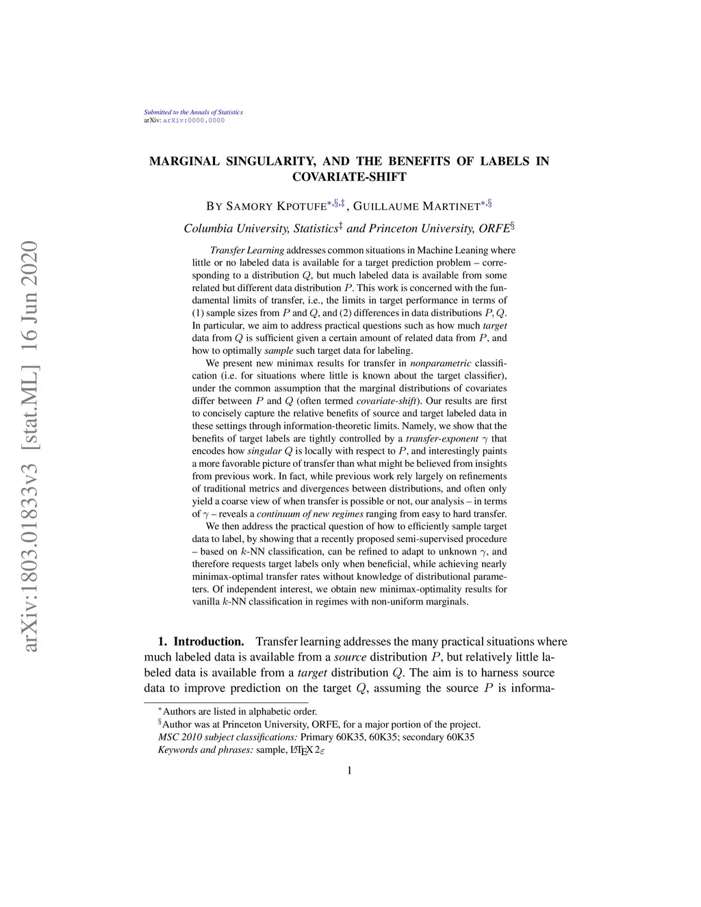We present new minimax results that concisely capture the relative benefits of source and target labeled data, under covariate-shift. Namely, we show that the benefits of target labels are controlled by a transfer-exponent that encodes how singular Q is locally w.r.t. P, and interestingly allows situations where transfer did not seem possible under previous insights. In fact, our new minimax analysis - in terms of - reveals a continuum of regimes ranging from situations where target labels have little benefit, to regimes where target labels dramatically improve classification. We then show that a recently proposed semi-supervised procedure can be extended to adapt to unknown , and therefore requests labels only when beneficial, while achieving minimax transfer rates.