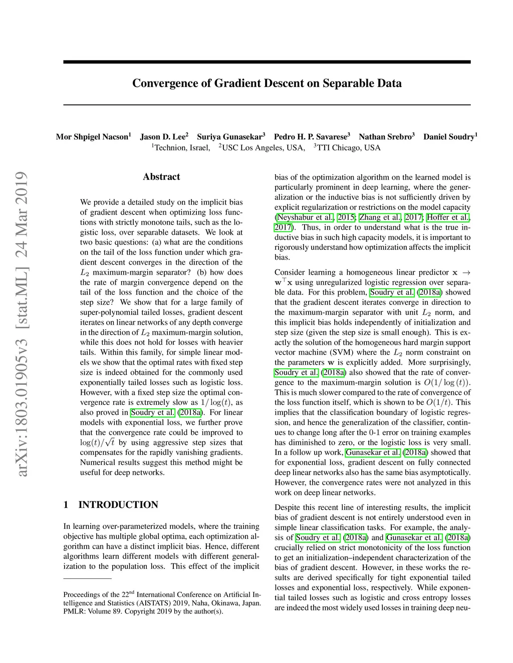 We provide a detailed study on the implicit bias of gradient descent when optimizing loss functions with strictly monotone tails, such as the logistic loss, over separable datasets. We look at two basic questions: (a) what are the conditions on the tail of the loss function under which gradient descent converges in the direction of the maximum-margin separator? (b) how does the rate of margin convergence depend on the tail of the loss function and the choice of the step size? We show that for a large family of super-polynomial tailed losses, gradient descent iterates on linear networks of any depth converge in the direction of maximum-margin solution, while this does not hold for losses with heavier tails. Within this family, for simple linear models we show that the optimal rates with fixed step size is indeed obtained for the commonly used exponentially tailed losses such as logistic loss. However, with a fixed step size the optimal convergence rate is extremely slow as , as also proved in Soudry et al. (2018). For linear models with exponential loss, we further prove that the convergence rate could be improved to by using aggressive step sizes that compensates for the rapidly vanishing gradients. Numerical results suggest this method might be useful for deep networks.