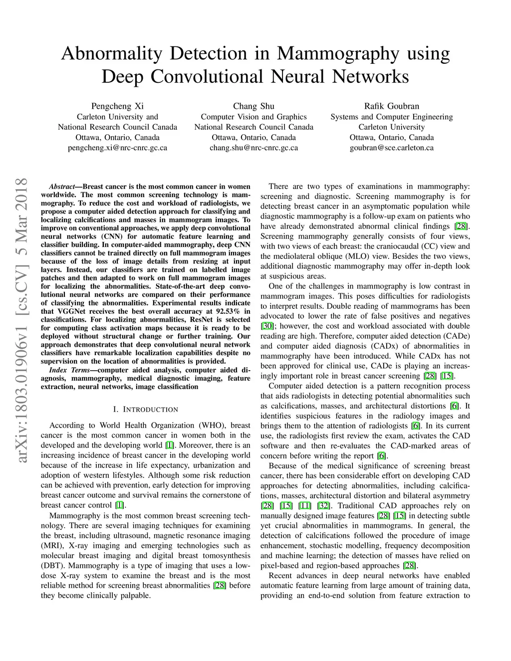 Abnormality Detection in Mammography using Deep Convolutional Neural