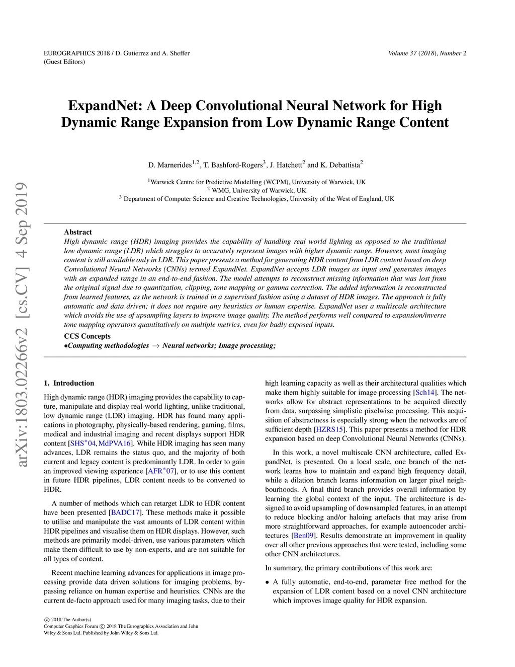 ExpandNet: A Deep Convolutional Neural Network for High Dynamic Range