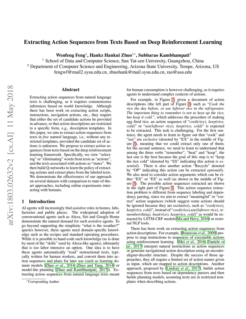 Extracting Action Sequences from Texts Based on Deep Reinforcement