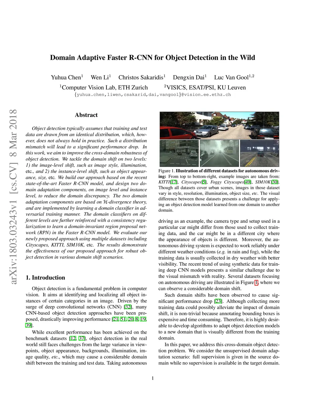 Domain Adaptive Faster R-CNN for Object Detection in the Wild