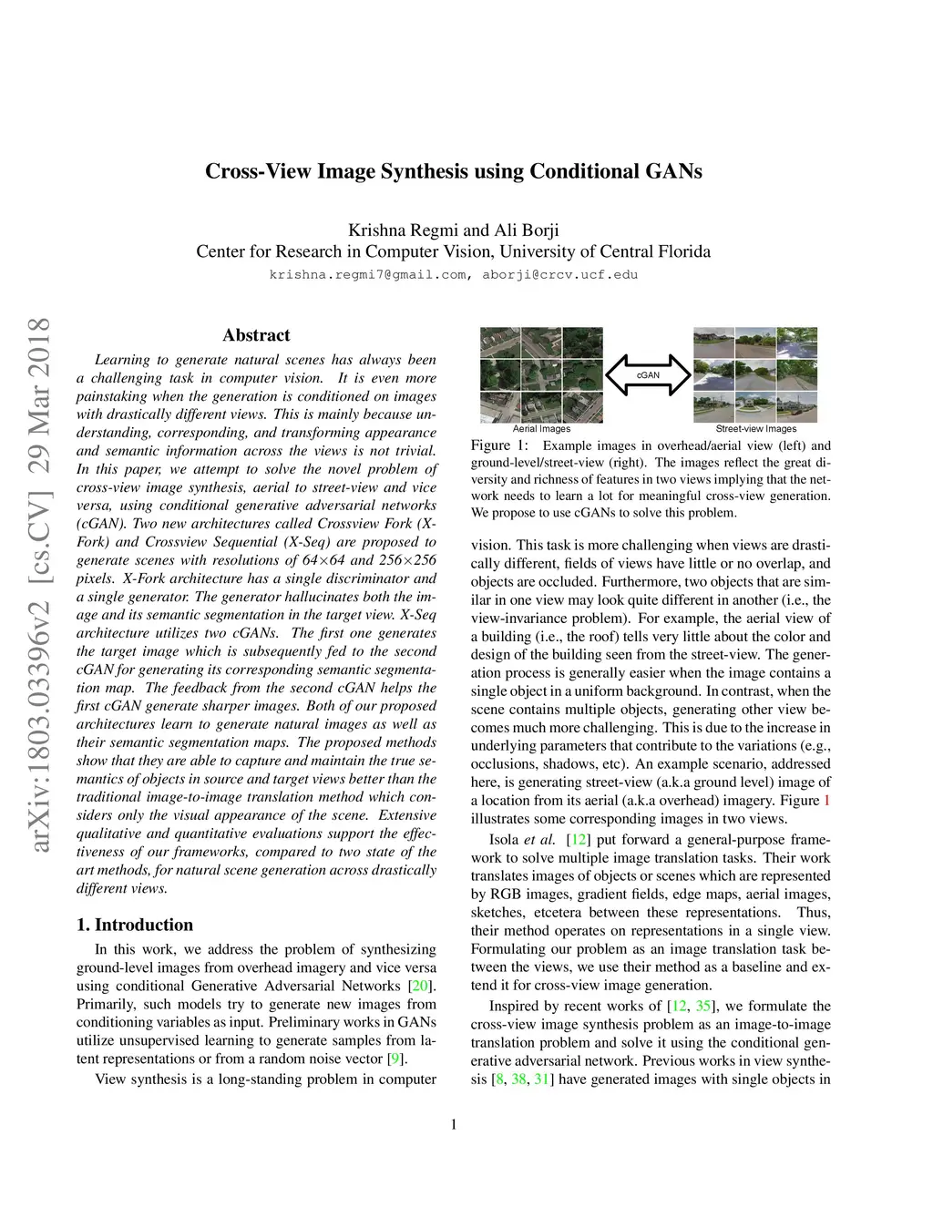 Learning to generate natural scenes has always been a challenging task in computer vision. It is even more painstaking when the generation is conditioned on images with drastically different views. This is mainly because understanding, corresponding, and transforming appearance and semantic information across the views is not trivial. In this paper, we attempt to solve the novel problem of cross-view image synthesis, aerial to street-view and vice versa, using conditional generative adversarial networks (cGAN). Two new architectures called Crossview Fork (X-Fork) and Crossview Sequential (X-Seq) are proposed to generate scenes with resolutions of 64x64 and 256x256 pixels. X-Fork architecture has a single discriminator and a single generator. The generator hallucinates both the image and its semantic segmentation in the target view. X-Seq architecture utilizes two cGANs. The first one generates the target image which is subsequently fed to the second cGAN for generating its corresponding semantic segmentation map. The feedback from the second cGAN helps the first cGAN generate sharper images. Both of our proposed architectures learn to generate natural images as well as their semantic segmentation maps. The proposed methods show that they are able to capture and maintain the true semantics of objects in source and target views better than the traditional image-to-image translation method which considers only the visual appearance of the scene. Extensive qualitative and quantitative evaluations support the effectiveness of our frameworks, compared to two state of the art methods, for natural scene generation across drastically different views.
