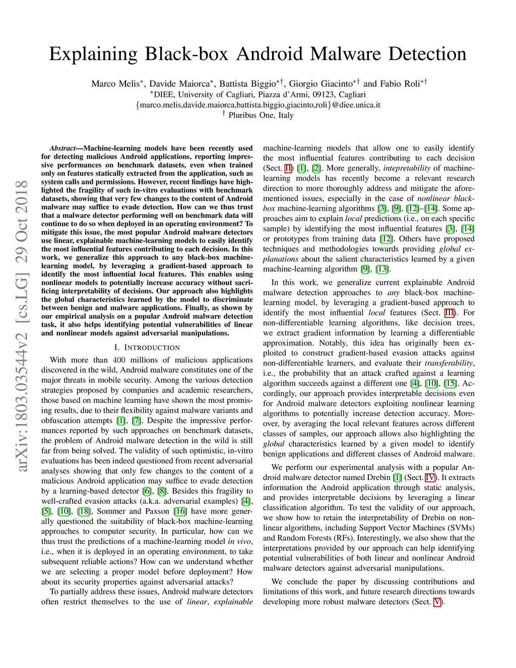 Machine-learning models have been recently used for detecting malicious Android applications, reporting impressive performances on benchmark datasets, even when trained only on features statically extracted from the application, such as system calls and permissions. However, recent findings have highlighted the fragility of such in-vitro evaluations with benchmark datasets, showing that very few changes to the content of Android malware may suffice to evade detection. How can we thus trust that a malware detector performing well on benchmark data will continue to do so when deployed in an operating environment? To mitigate this issue, the most popular Android malware detectors use linear, explainable machine-learning models to easily identify the most influential features contributing to each decision. In this work, we generalize this approach to any black-box machine- learning model, by leveraging a gradient-based approach to identify the most influential local features. This enables using nonlinear models to potentially increase accuracy without sacrificing interpretability of decisions. Our approach also highlights the global characteristics learned by the model to discriminate between benign and malware applications. Finally, as shown by our empirical analysis on a popular Android malware detection task, it also helps identifying potential vulnerabilities of linear and nonlinear models against adversarial manipulations.