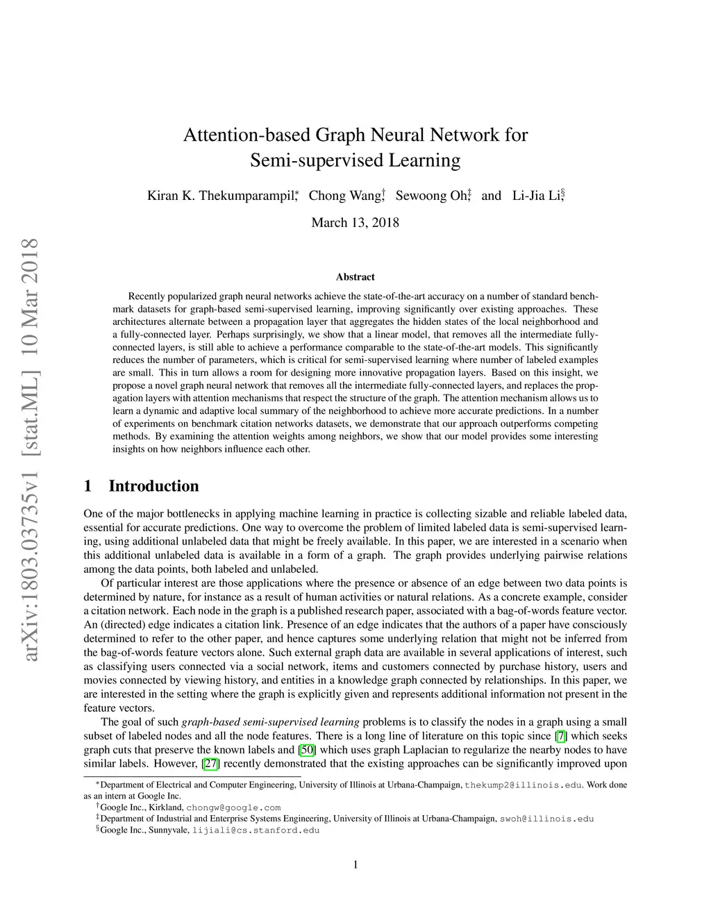 Attention-based Graph Neural Network for Semi-supervised Learning