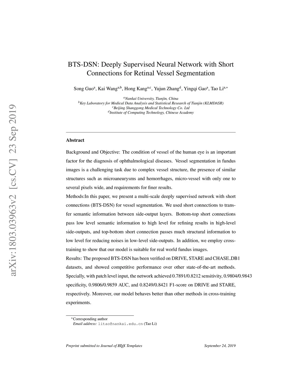 BTS-DSN: Deeply Supervised Neural Network with Short Connections for