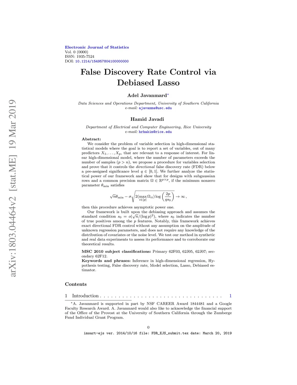 We consider the problem of variable selection in high-dimensional statistical models where the goal is to report a set of variables, out of many predictors , that are relevant to a response of interest. For linear high-dimensional model, where the number of parameters exceeds the number of samples , we propose a procedure for variables selection and prove that it controls the "directional" false discovery rate (FDR) below a pre-assigned significance level . We further analyze the statistical power of our framework and show that for designs with subgaussian rows and a common precision matrix , if the minimum nonzero parameter satisfies then this procedure achieves asymptotic power one. Our framework is built upon the debiasing approach and assumes the standard condition , where indicates the number of true positives among the features. Notably, this framework achieves exact directional FDR control without any assumption on the amplitude of unknown regression parameters, and does not require any knowledge of the distribution of covariates or the noise level. We test our method in synthetic and real data experiments to assess its performance and to corroborate our theoretical results.