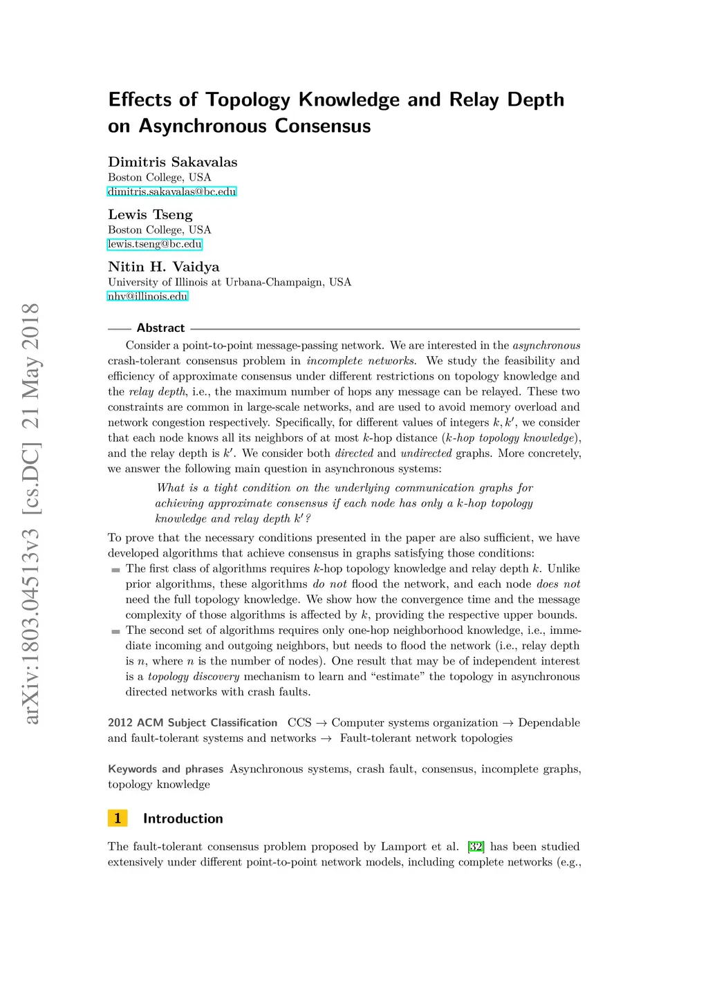 Effects of Topology Knowledge and Relay Depth on Asynchronous Consensus