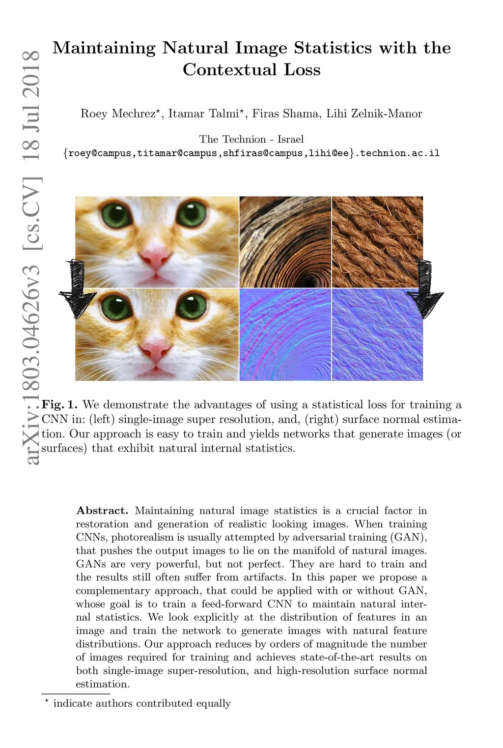 Maintaining natural image statistics is a crucial factor in restoration and generation of realistic looking images. When training CNNs, photorealism is usually attempted by adversarial training (GAN), that pushes the output images to lie on the manifold of natural images. GANs are very powerful, but not perfect. They are hard to train and the results still often suffer from artifacts. In this paper we propose a complementary approach, that could be applied with or without GAN, whose goal is to train a feed-forward CNN to maintain natural internal statistics. We look explicitly at the distribution of features in an image and train the network to generate images with natural feature distributions. Our approach reduces by orders of magnitude the number of images required for training and achieves state-of-the-art results on both single-image super-resolution, and high-resolution surface normal estimation.