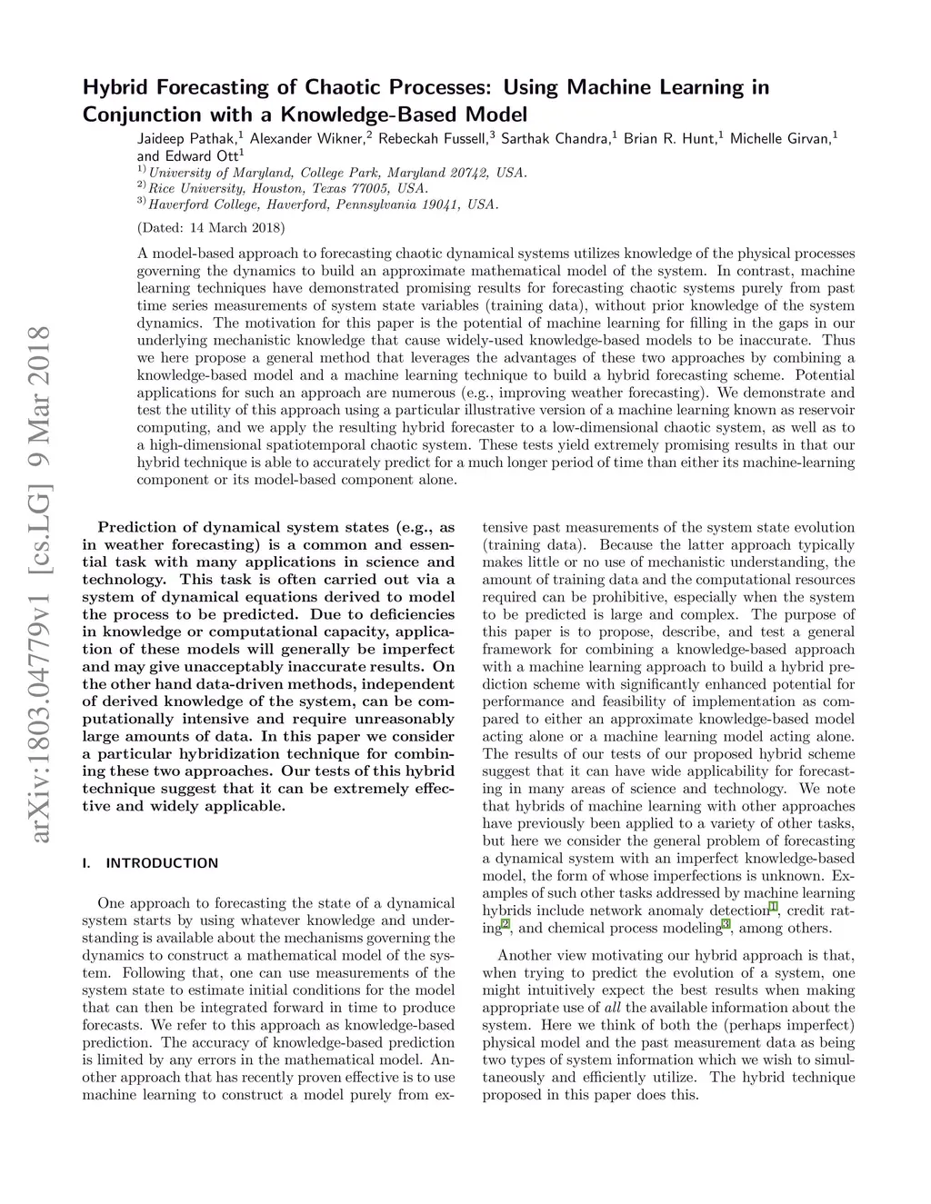 Hybrid Forecasting of Chaotic Processes: Using Machine Learning in