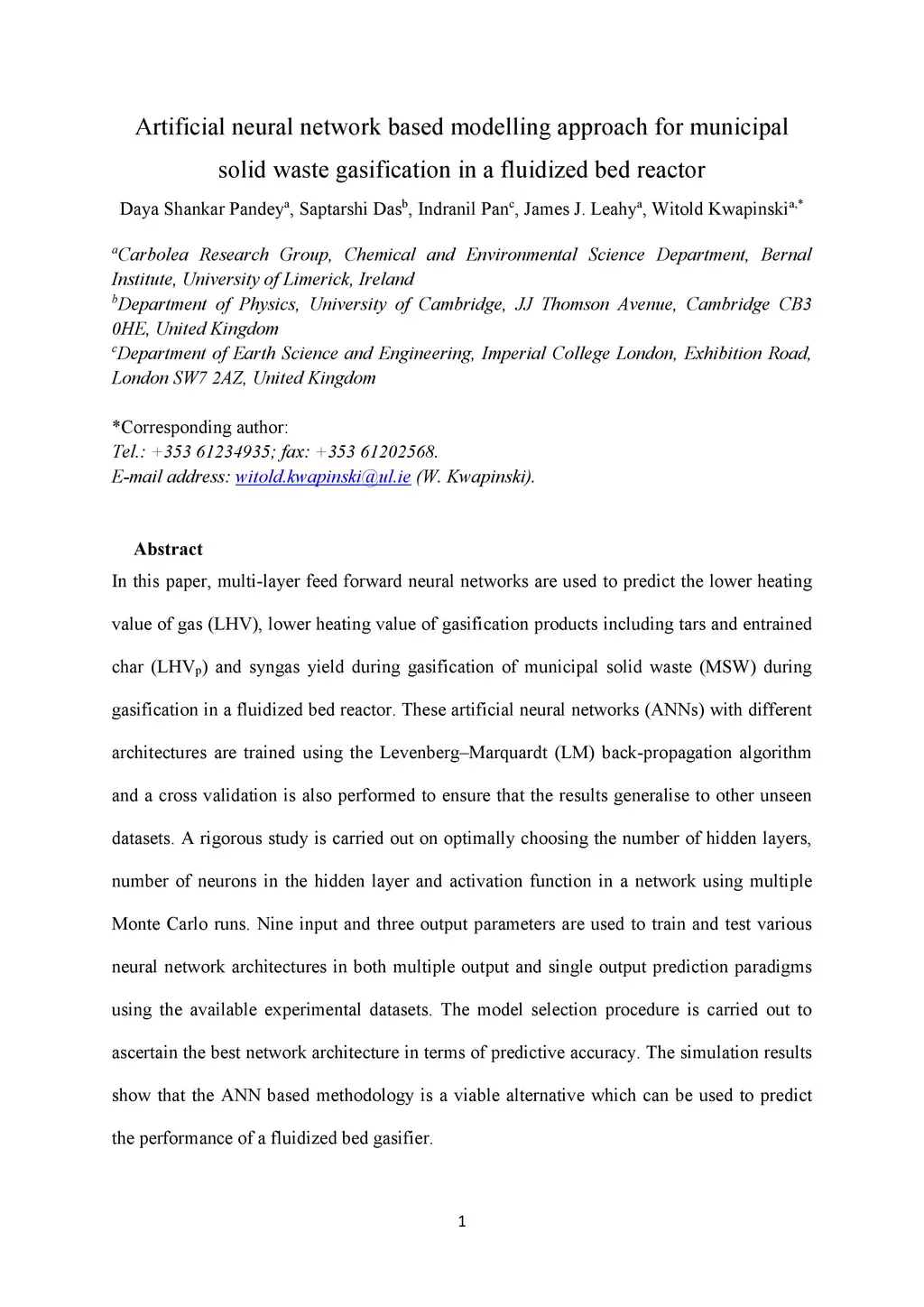Artificial neural network based modelling approach for municipal solid