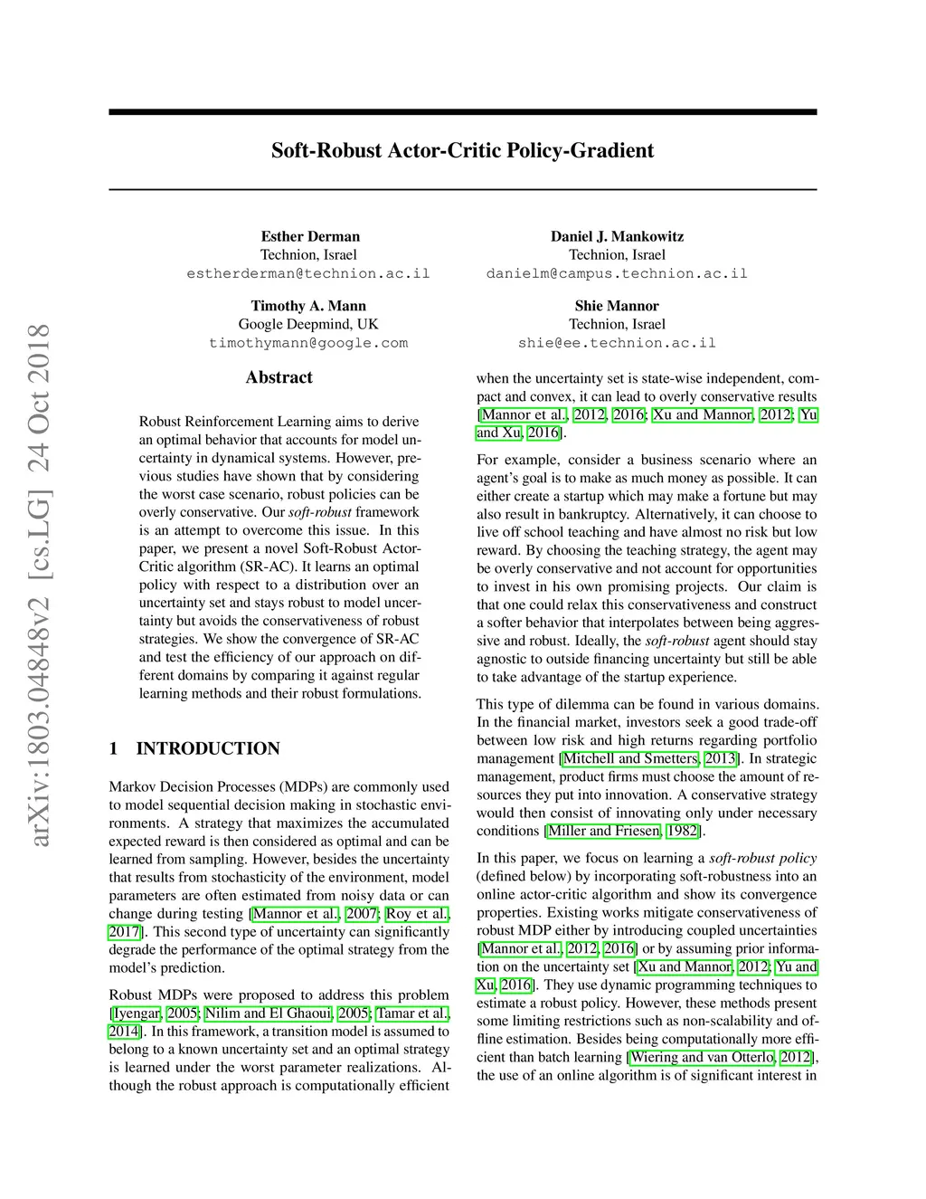 Soft-Robust Actor-Critic Policy-Gradient