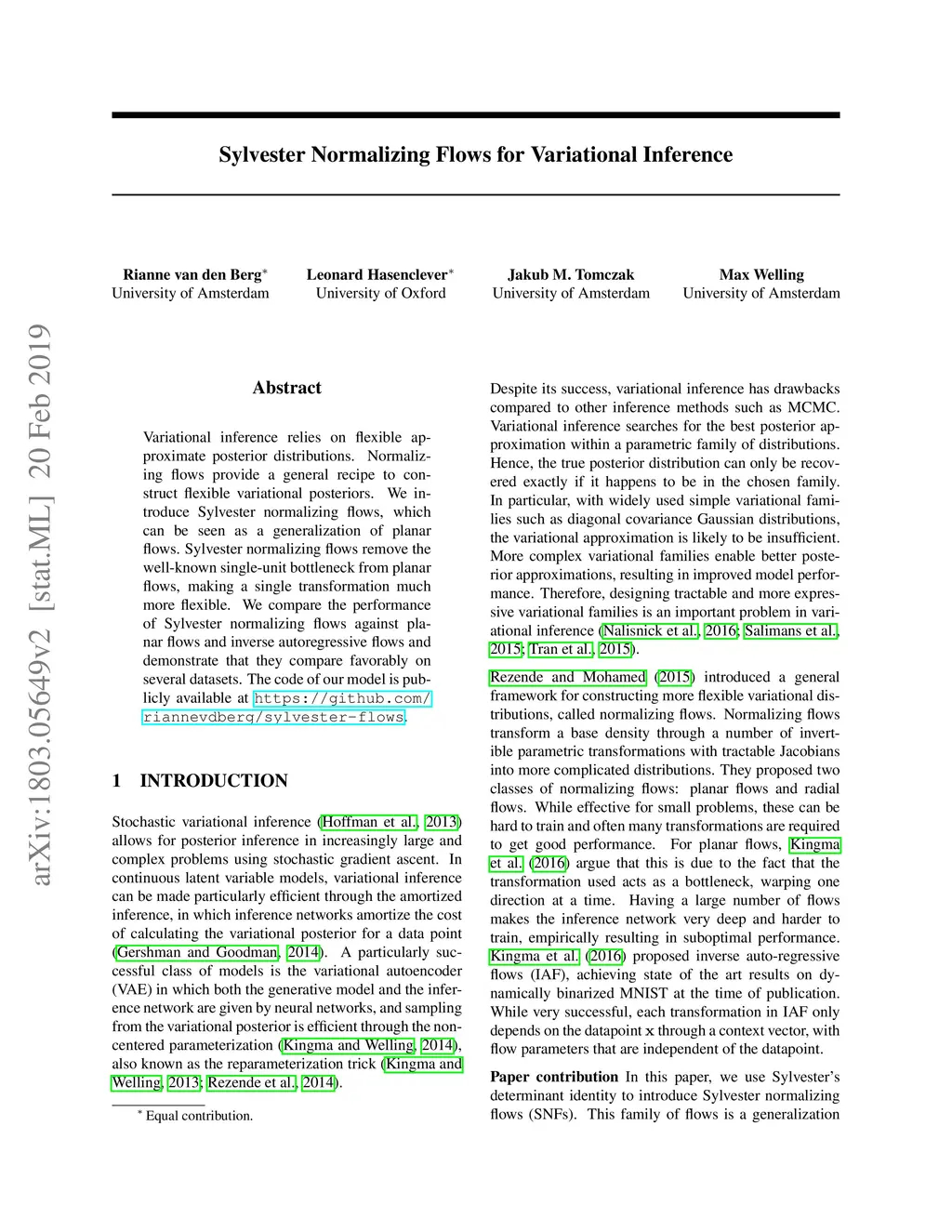 Sylvester Normalizing Flows for Variational Inference