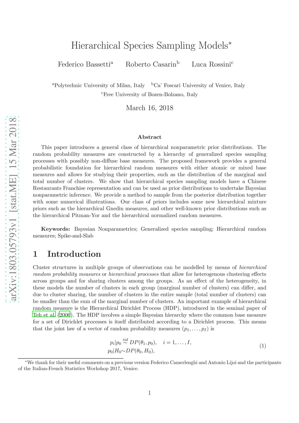 Hierarchical Species Sampling Models