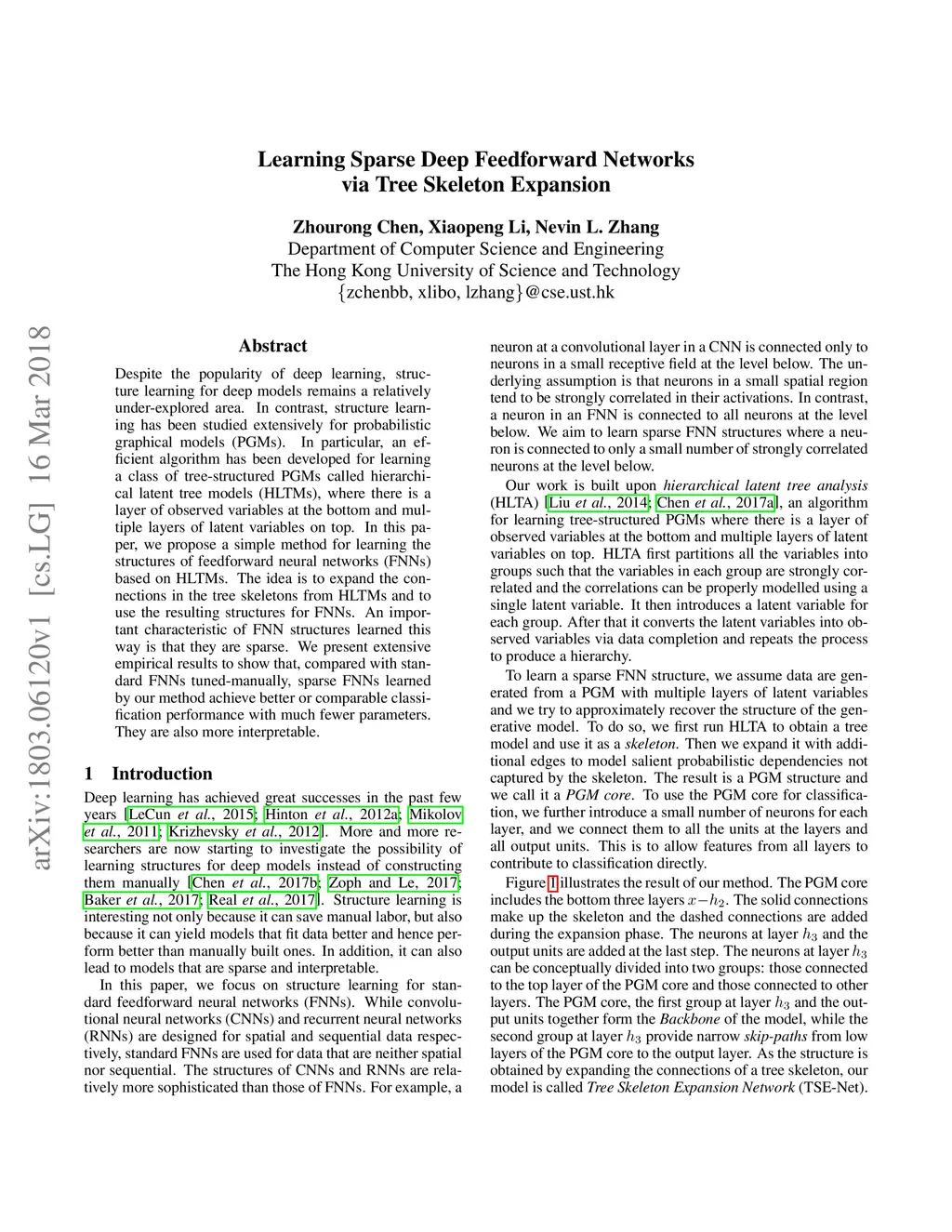 Learning Sparse Deep Feedforward Networks via Tree Skeleton Expansion