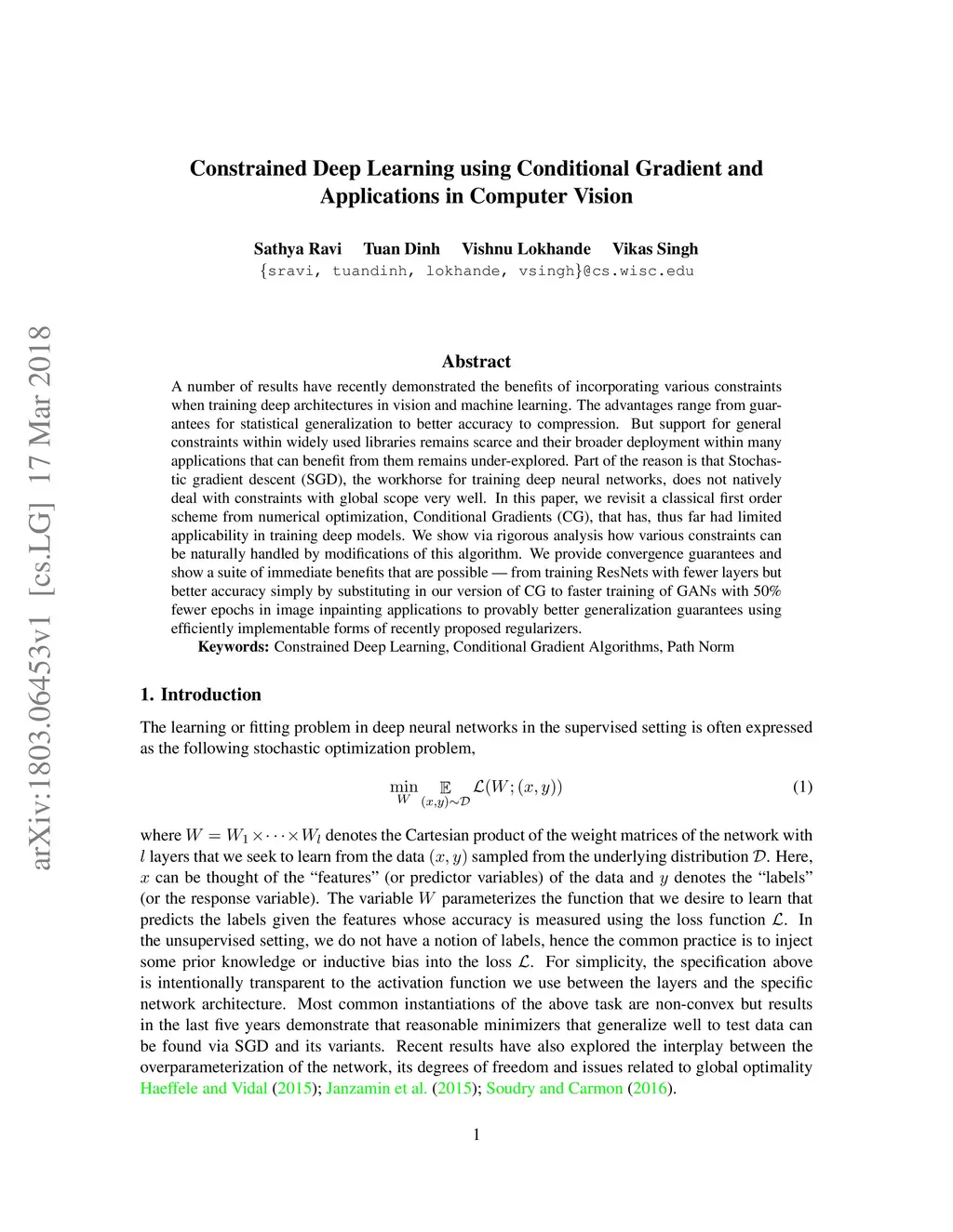Constrained Deep Learning using Conditional Gradient and Applications in