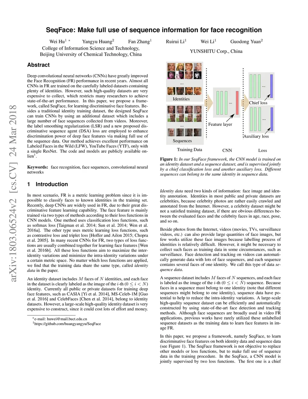 Deep convolutional neural networks (CNNs) have greatly improved the Face Recognition (FR) performance in recent years. Almost all CNNs in FR are trained on the carefully labeled datasets containing plenty of identities. However, such high-quality datasets are very expensive to collect, which restricts many researchers to achieve state-of-the-art performance. In this paper, we propose a framework, called SeqFace, for learning discriminative face features. Besides a traditional identity training dataset, the designed SeqFace can train CNNs by using an additional dataset which includes a large number of face sequences collected from videos. Moreover, the label smoothing regularization (LSR) and a new proposed discriminative sequence agent (DSA) loss are employed to enhance discrimination power of deep face features via making full use of the sequence data. Our method achieves excellent performance on Labeled Faces in the Wild (LFW), YouTube Faces (YTF), only with a single ResNet. The code and models are publicly available on-line (https://github.com/huangyangyu/SeqFace).
