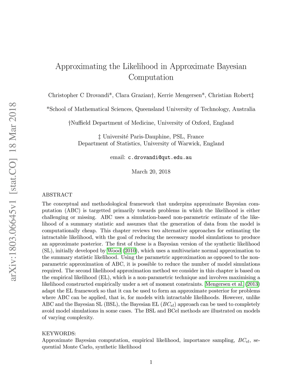 Approximating the Likelihood in Approximate Bayesian Computation