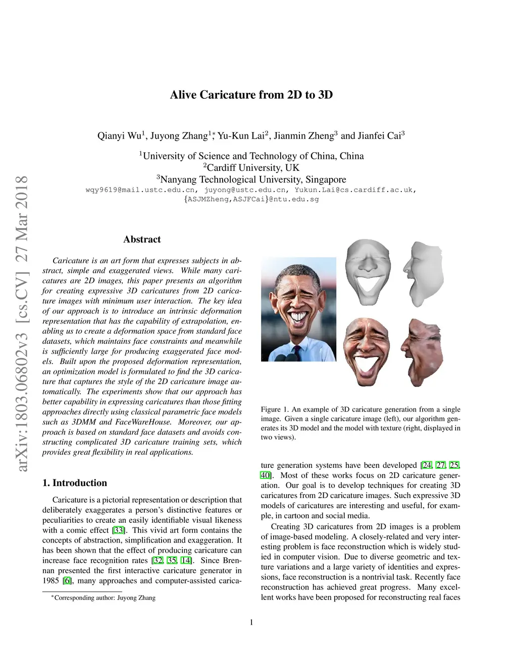 Caricature is an art form that expresses subjects in abstract, simple and exaggerated view. While many caricatures are 2D images, this paper presents an algorithm for creating expressive 3D caricatures from 2D caricature images with a minimum of user interaction. The key idea of our approach is to introduce an intrinsic deformation representation that has a capacity of extrapolation enabling us to create a deformation space from standard face dataset, which maintains face constraints and meanwhile is sufficiently large for producing exaggerated face models. Built upon the proposed deformation representation, an optimization model is formulated to find the 3D caricature that captures the style of the 2D caricature image automatically. The experiments show that our approach has better capability in expressing caricatures than those fitting approaches directly using classical parametric face models such as 3DMM and FaceWareHouse. Moreover, our approach is based on standard face datasets and avoids constructing complicated 3D caricature training set, which provides great flexibility in real applications.