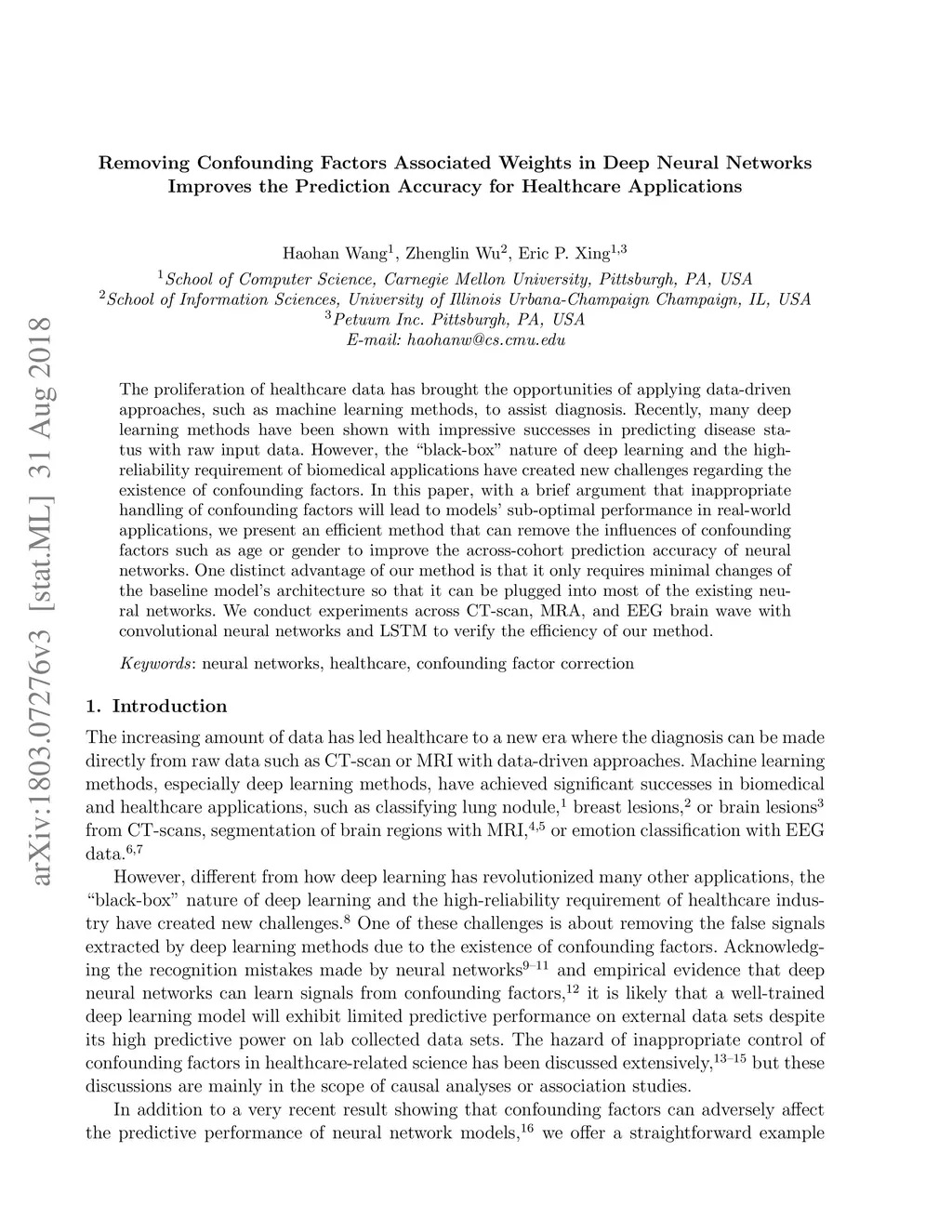 Removing Confounding Factors Associated Weights in Deep Neural Networks