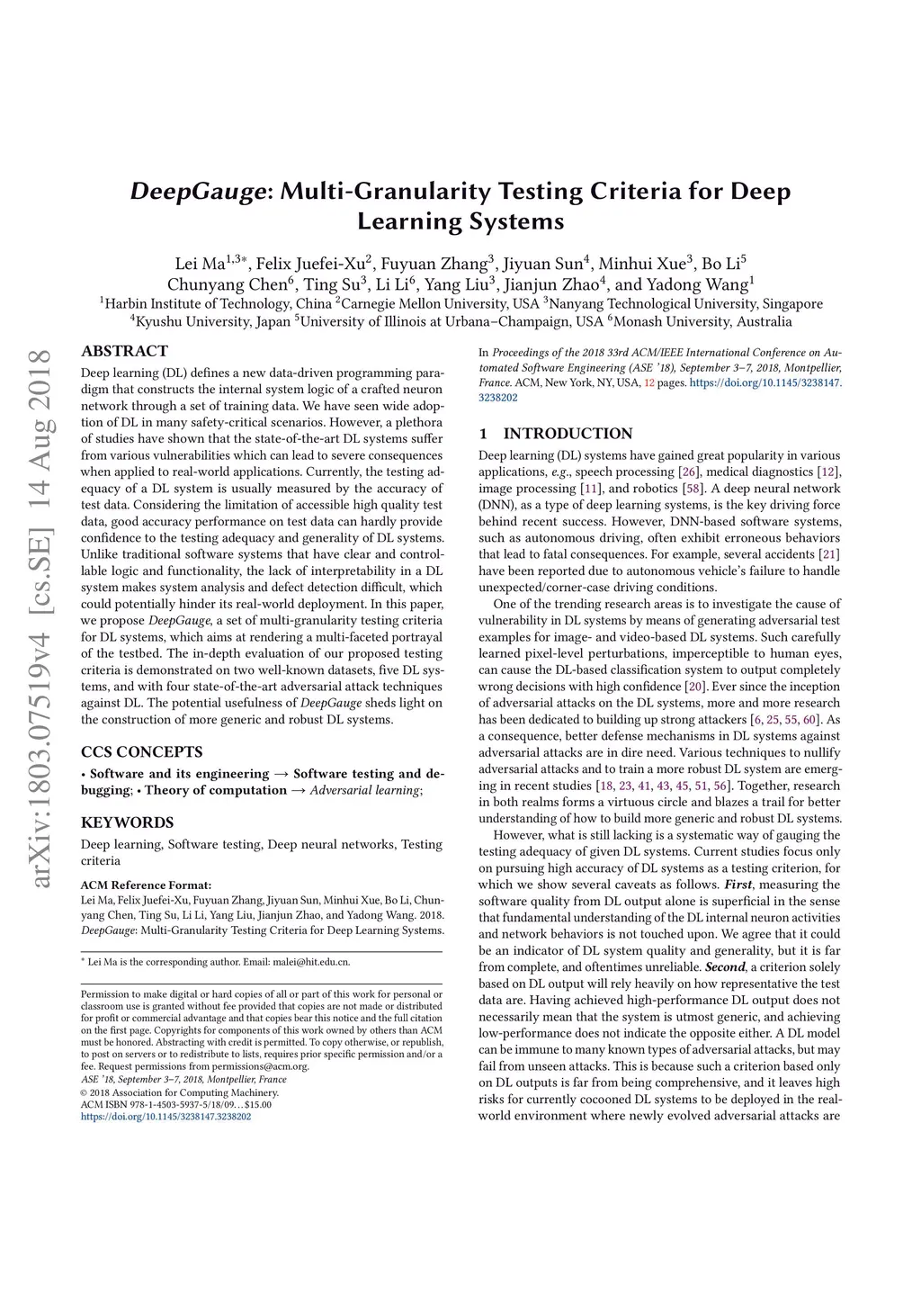 DeepGauge: Multi-Granularity Testing Criteria for Deep Learning Systems