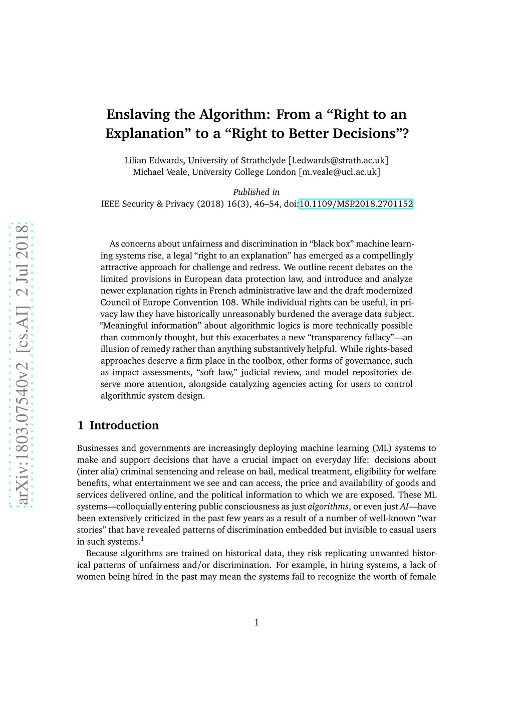 Enslaving the Algorithm: From a "Right to an Explanation" to a "Right to
