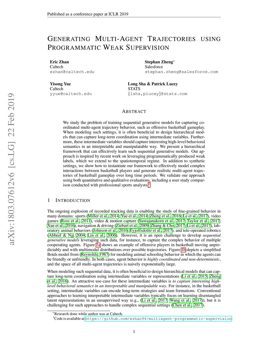 We propose and study the problem of generative multi-agent behavioral cloning, where the goal is to learn a generative multi-agent policy from pre-collected demonstration data. Building upon advances in deep generative models, we present a hierarchical policy framework that can tractably learn complex mappings from input states to distributions over multi-agent action spaces. Our framework is flexible and can incorporate high-level domain knowledge into the structure of the underlying deep graphical model. For instance, we can effectively learn low-dimensional structures, such as long-term goals and team coordination, from data. Thus, an additional benefit of our hierarchical approach is the ability to plan over multiple time scales for effective long-term planning. We showcase our approach in an application of modeling team offensive play from basketball tracking data. We show how to instantiate our framework to effectively model complex interactions between basketball players and generate realistic multi-agent trajectories of basketball gameplay over long time periods. We validate our approach using both quantitative and qualitative evaluations, including a user study comparison conducted with professional sports analysts.