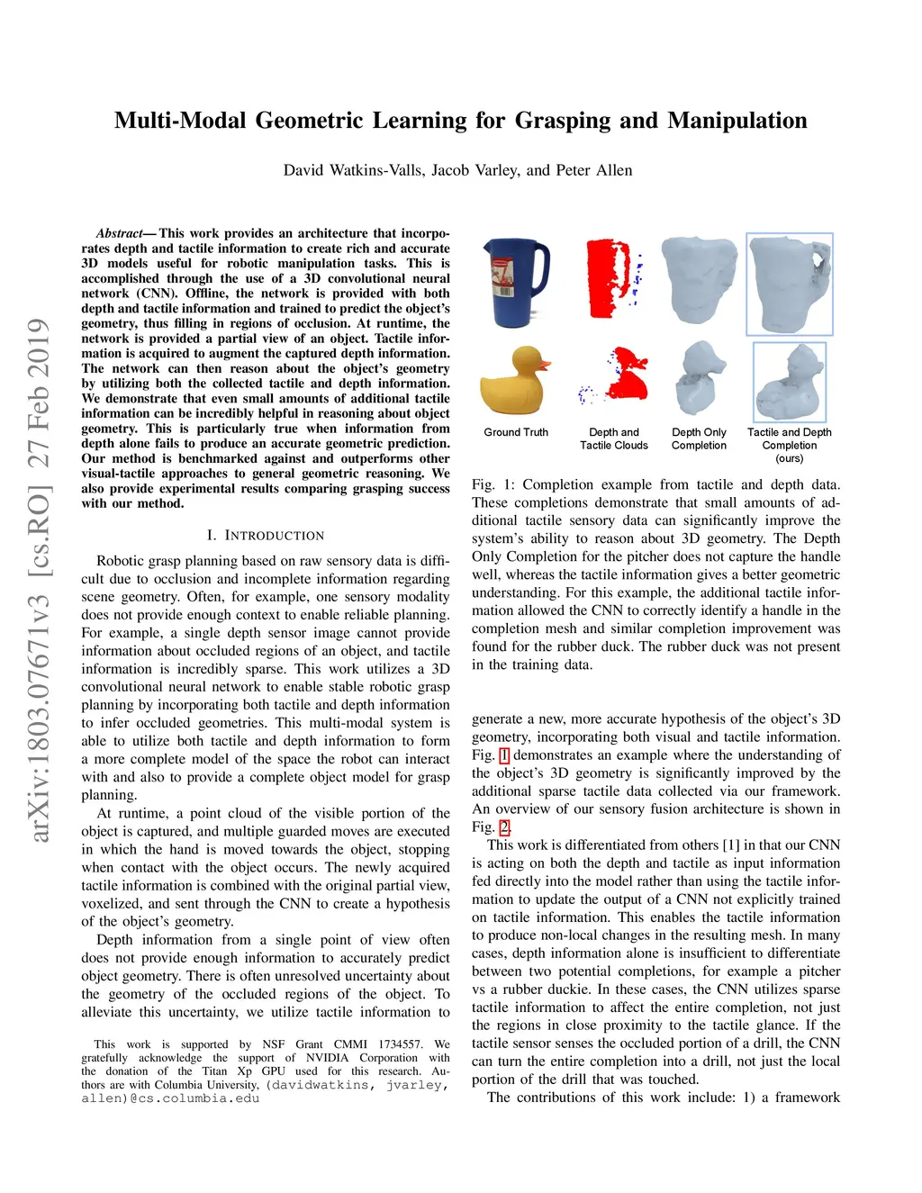 Multi-Modal Geometric Learning for Grasping and Manipulation