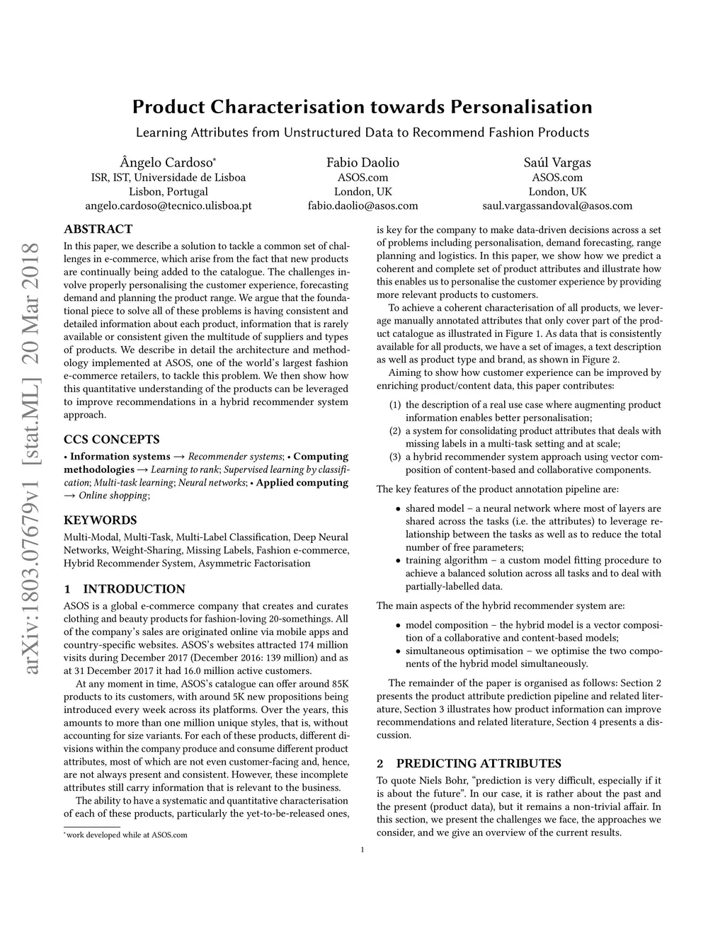 In this paper, we describe a solution to tackle a common set of challenges in e-commerce, which arise from the fact that new products are continually being added to the catalogue. The challenges involve properly personalising the customer experience, forecasting demand and planning the product range. We argue that the foundational piece to solve all of these problems is having consistent and detailed information about each product, information that is rarely available or consistent given the multitude of suppliers and types of products. We describe in detail the architecture and methodology implemented at ASOS, one of the world's largest fashion e-commerce retailers, to tackle this problem. We then show how this quantitative understanding of the products can be leveraged to improve recommendations in a hybrid recommender system approach.