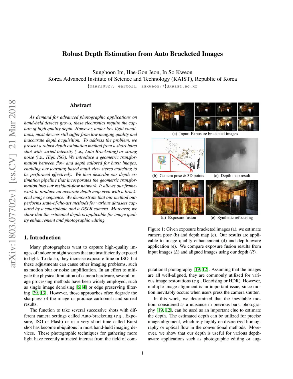 Robust Depth Estimation from Auto Bracketed Images