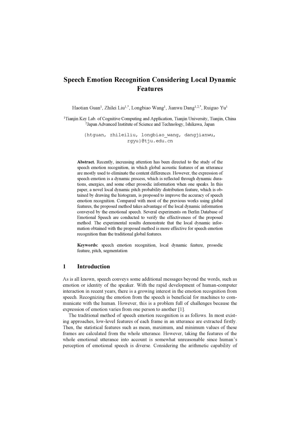 Recently, increasing attention has been directed to the study of the speech emotion recognition, in which global acoustic features of an utterance are mostly used to eliminate the content differences. However, the expression of speech emotion is a dynamic process, which is reflected through dynamic durations, energies, and some other prosodic information when one speaks. In this paper, a novel local dynamic pitch probability distribution feature, which is obtained by drawing the histogram, is proposed to improve the accuracy of speech emotion recognition. Compared with most of the previous works using global features, the proposed method takes advantage of the local dynamic information conveyed by the emotional speech. Several experiments on Berlin Database of Emotional Speech are conducted to verify the effectiveness of the proposed method. The experimental results demonstrate that the local dynamic information obtained with the proposed method is more effective for speech emotion recognition than the traditional global features.